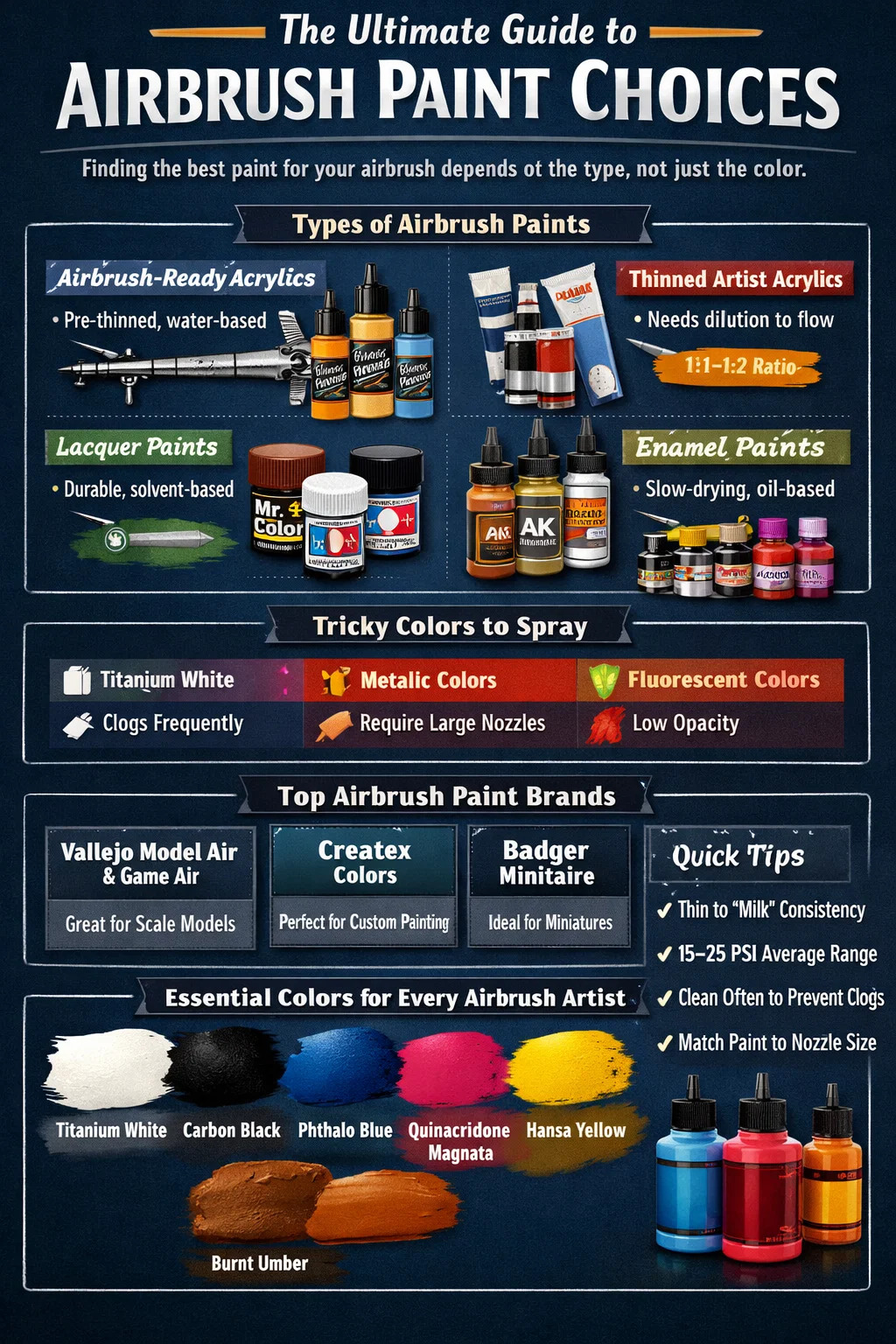 Прежде чем погрузиться в конкретные оттенки, важно понимать, что аэрограф не различает красный и синий — он различает текущую краску и краску, которая забивается. Материал (тип краски) является важнейшим фактором, влияющим на эффективность аэрографа. Вот разбивка по основным категориям: