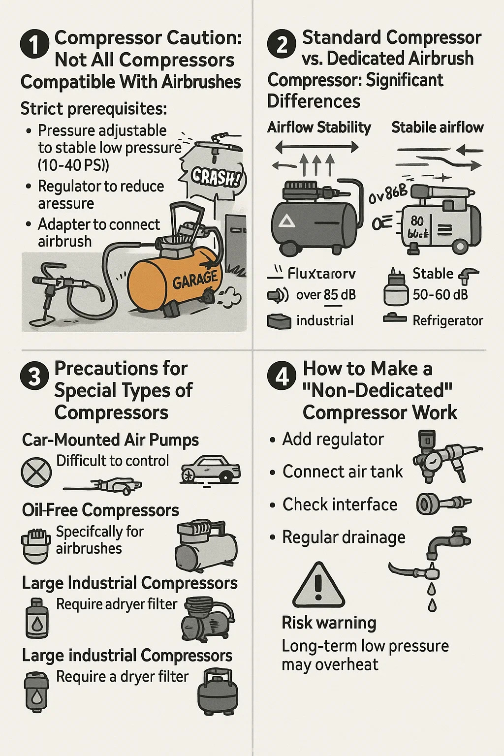 2. Стандартный компрессор или выделенный Аэрограф Компрессор : Значительные различия